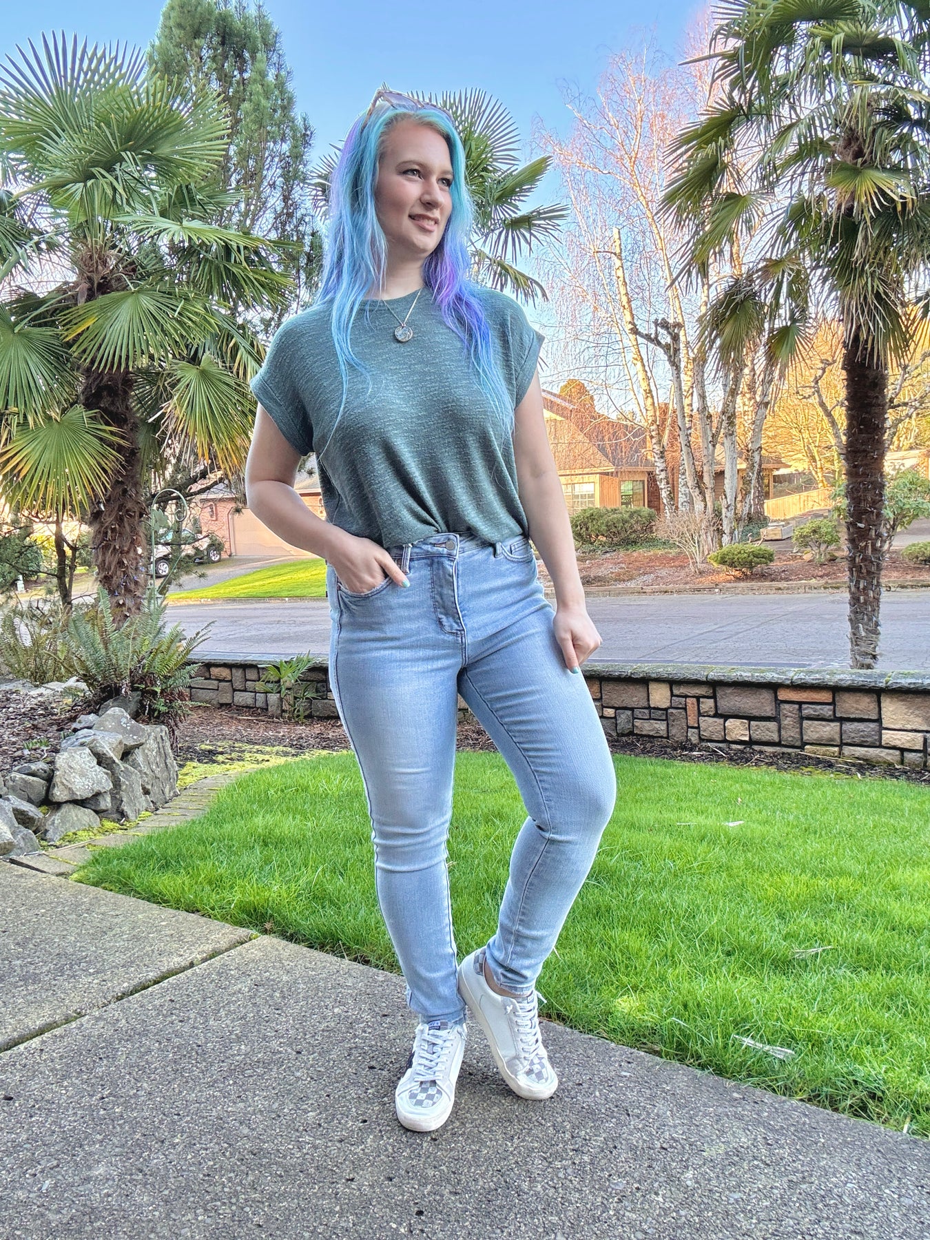 An RTB Best Seller! This hacci slub tee is full length and has a scoop neck and rolled sleeves. Find all the colors available!