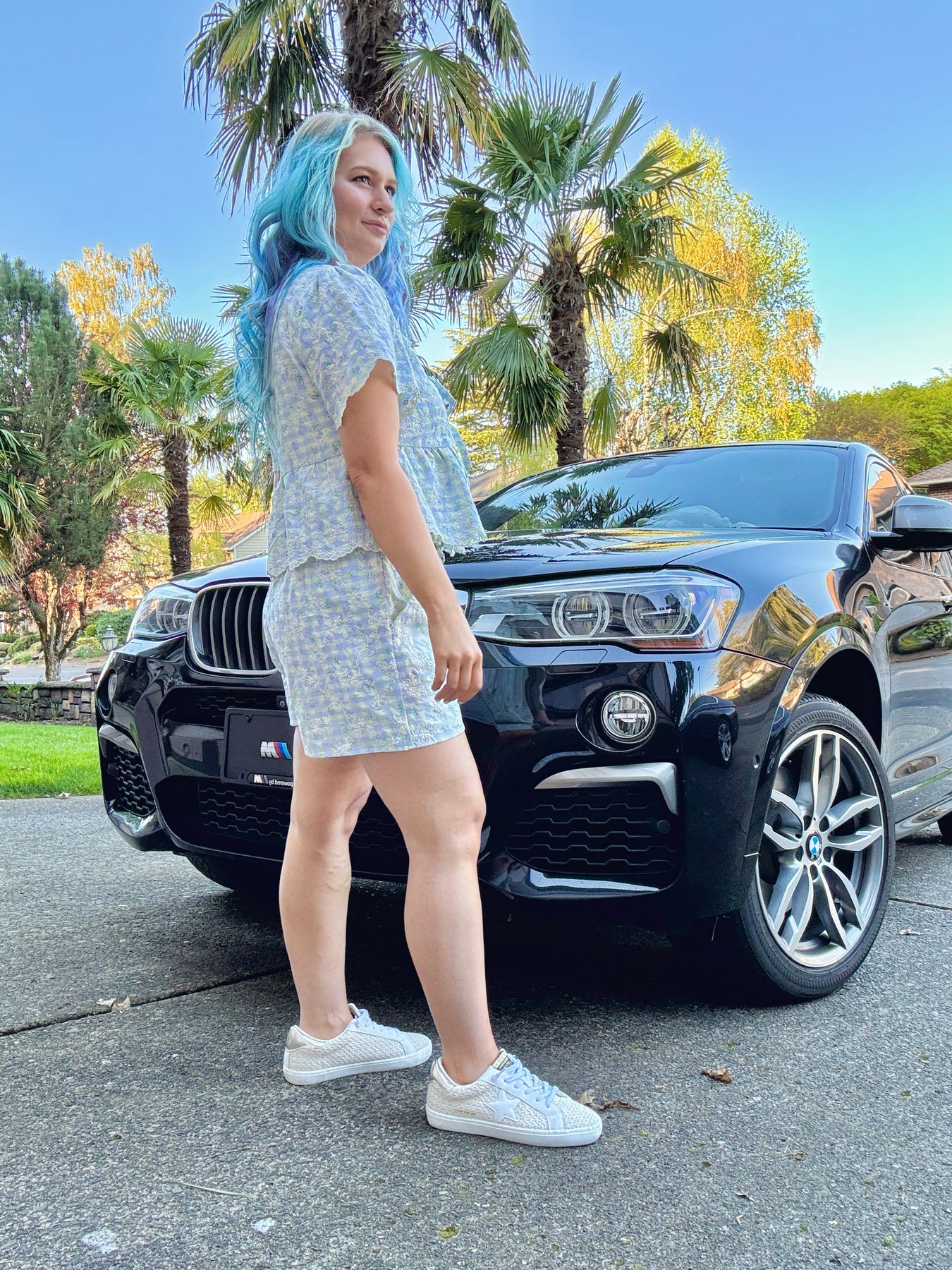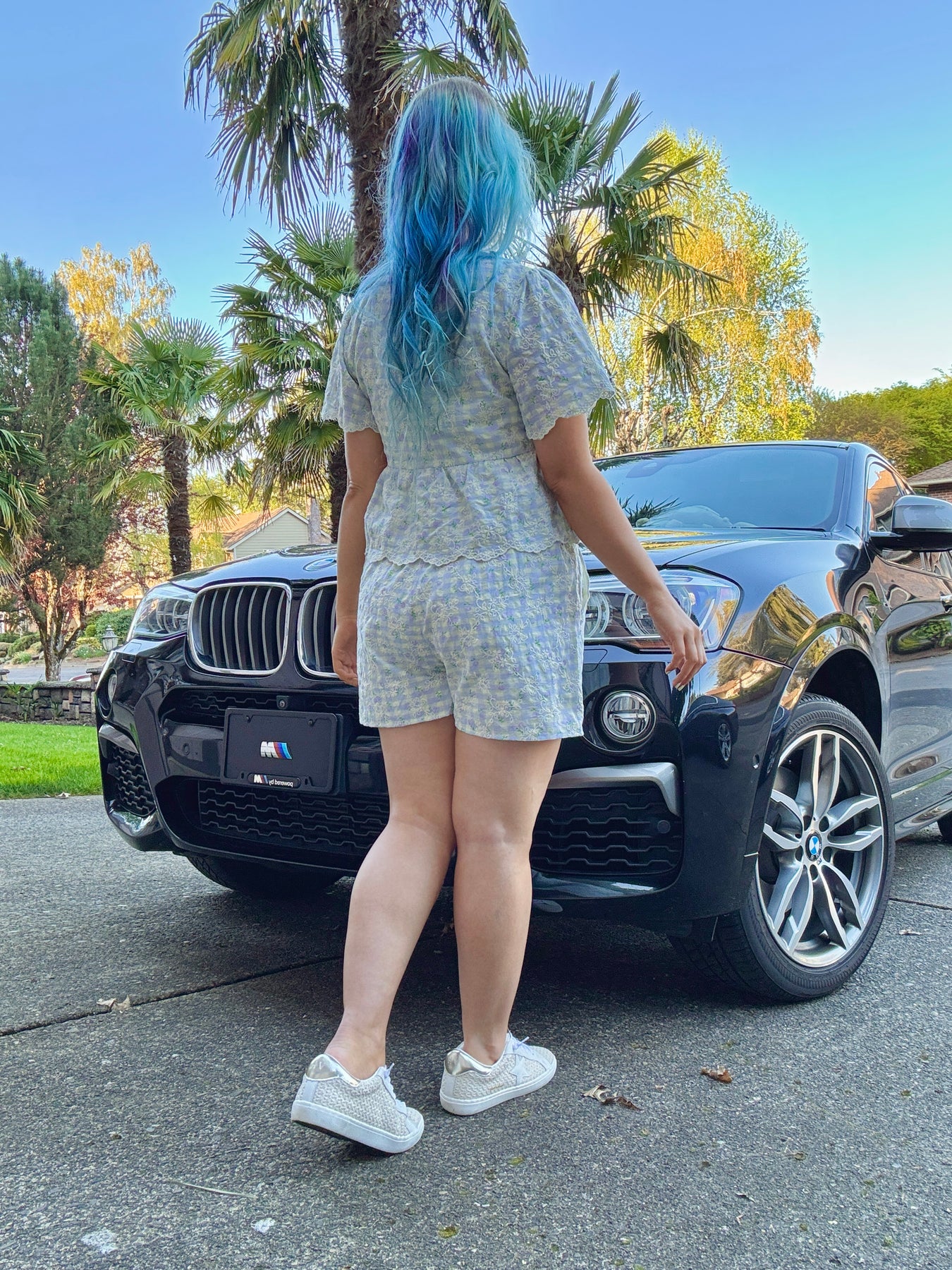 Part of a set with the Sunday brunch floral gingham tie top (sold separately).