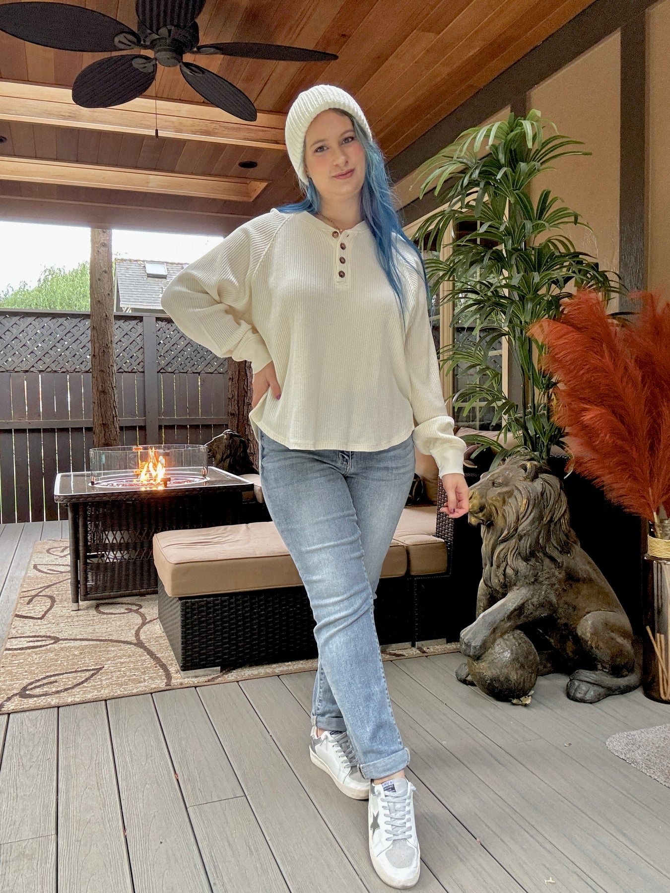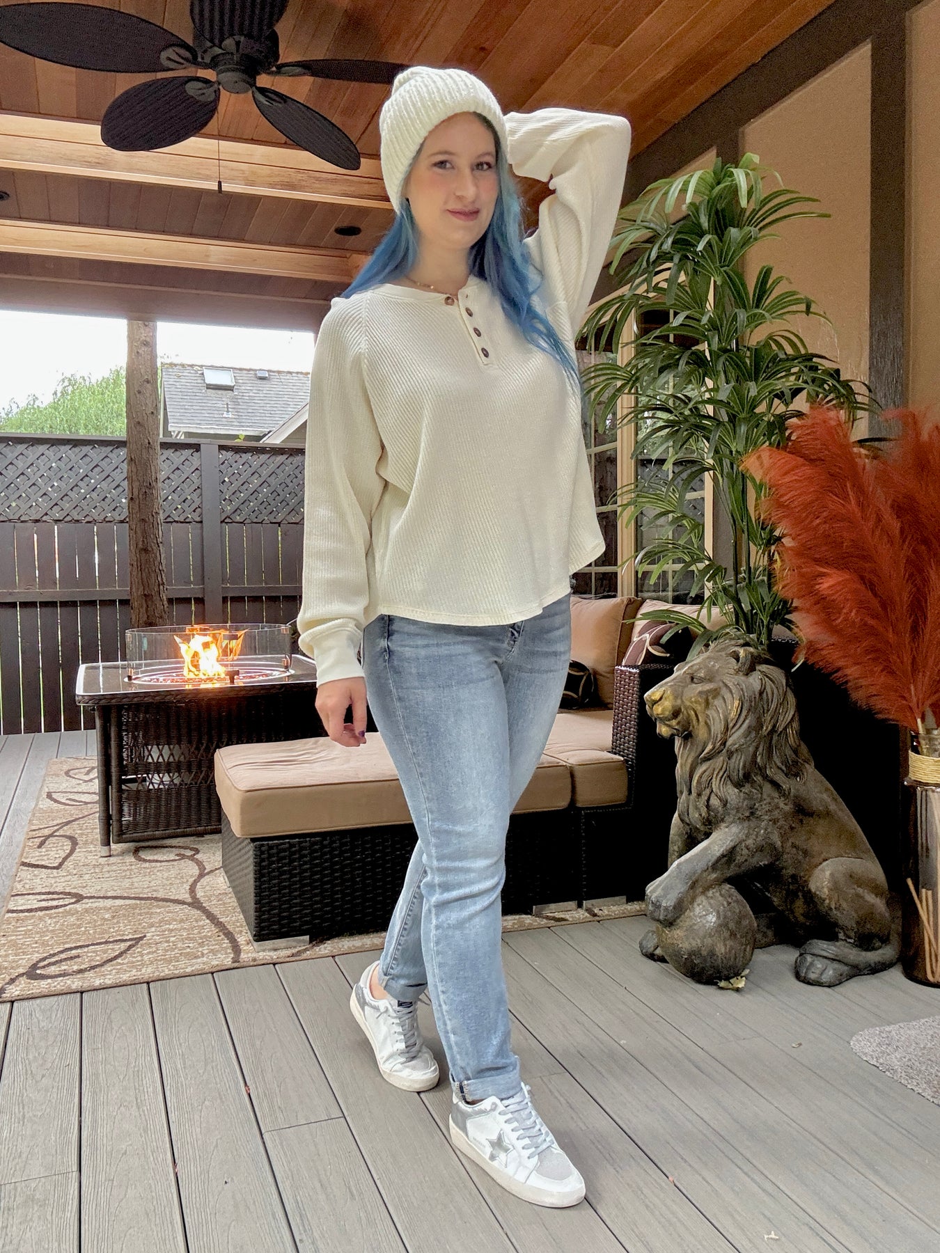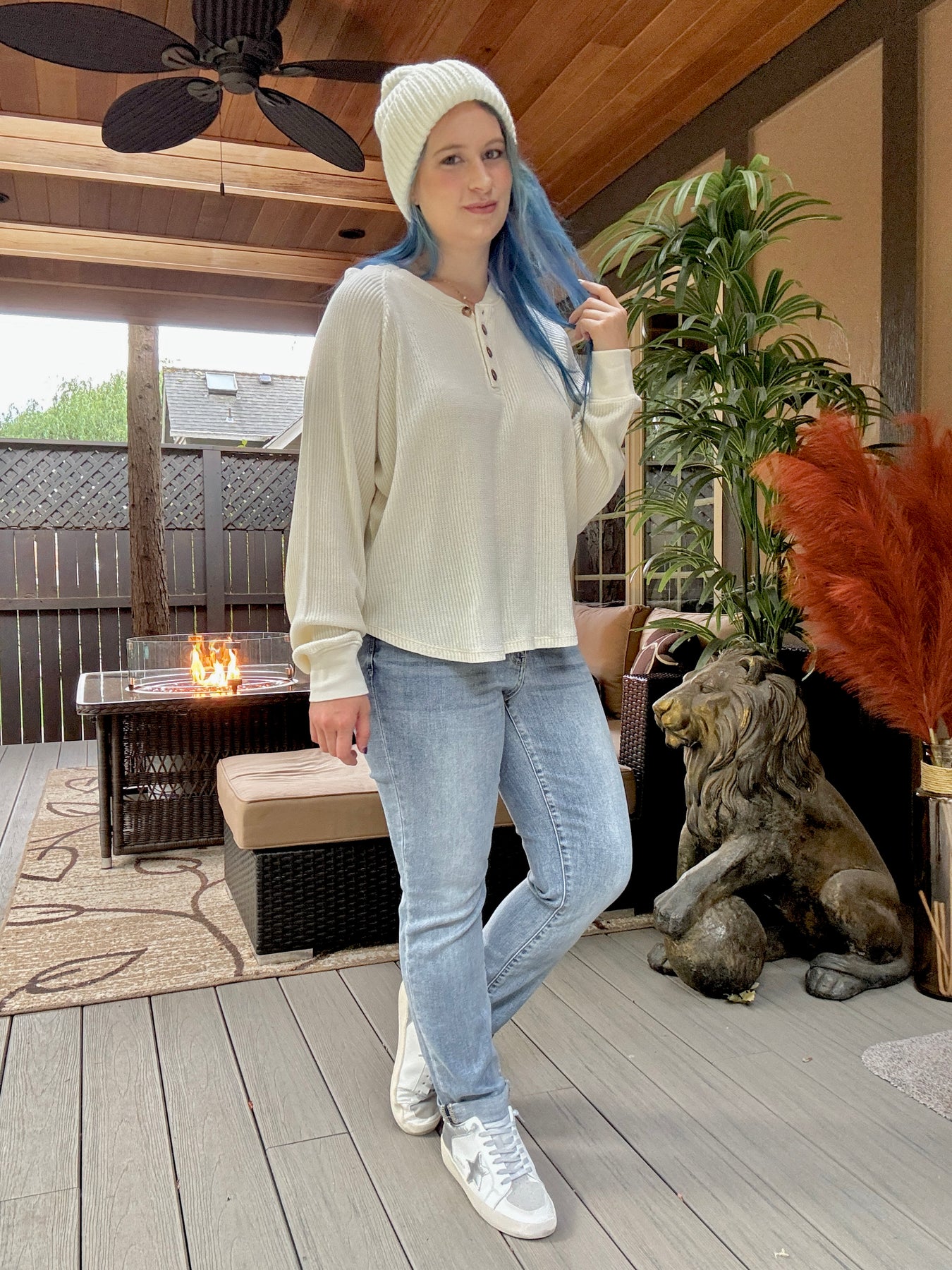 Main street waffle henley top Cream