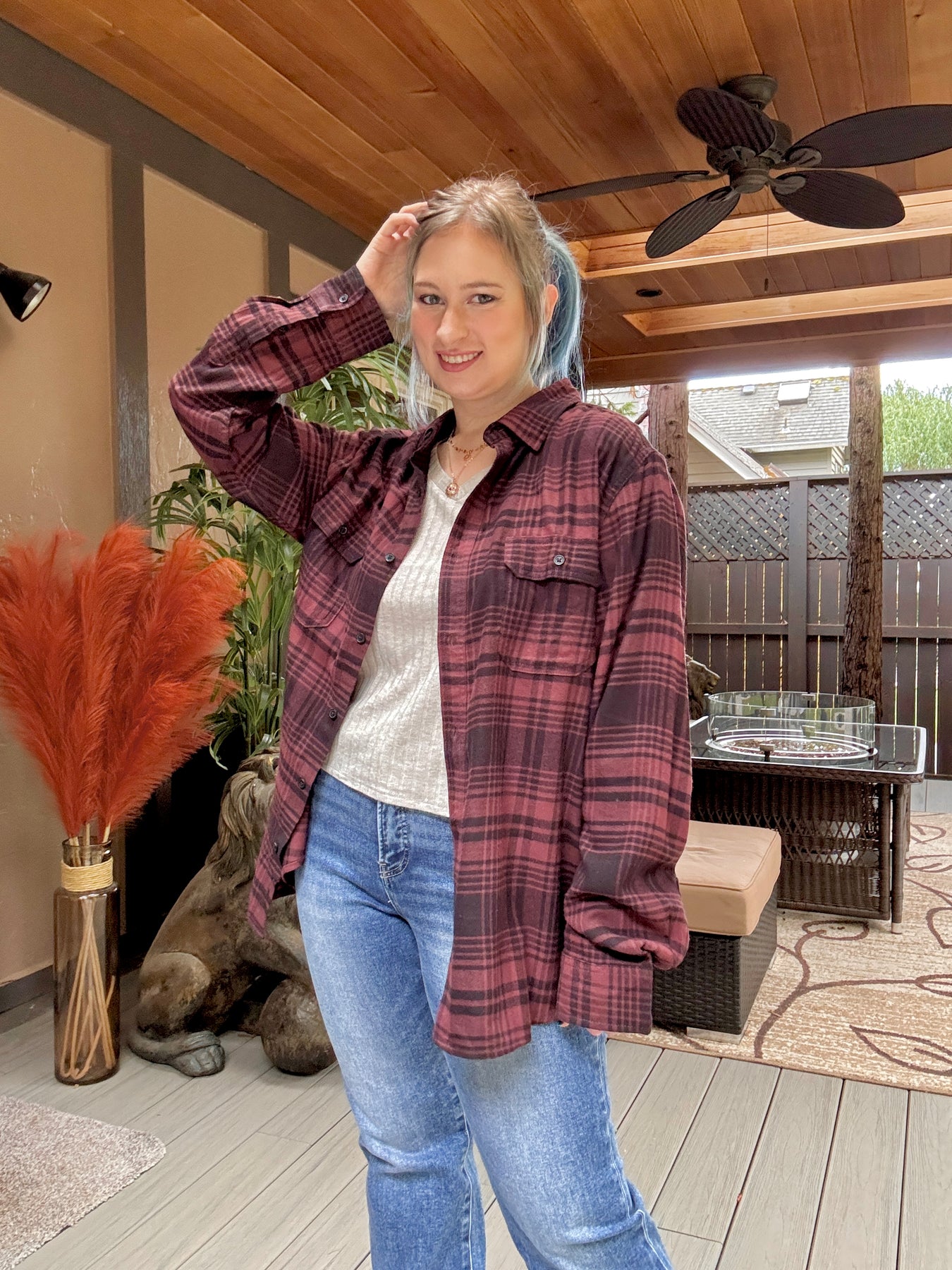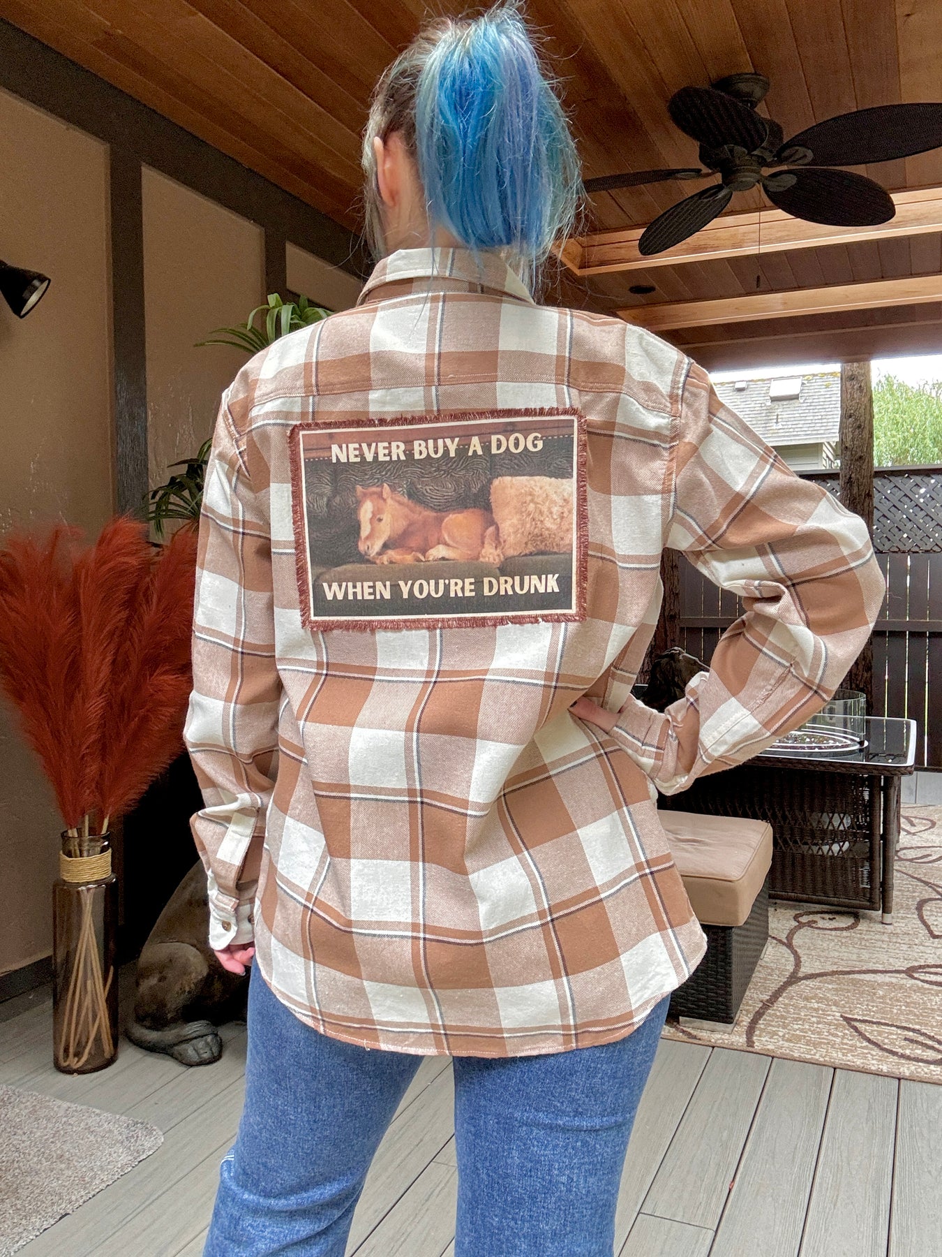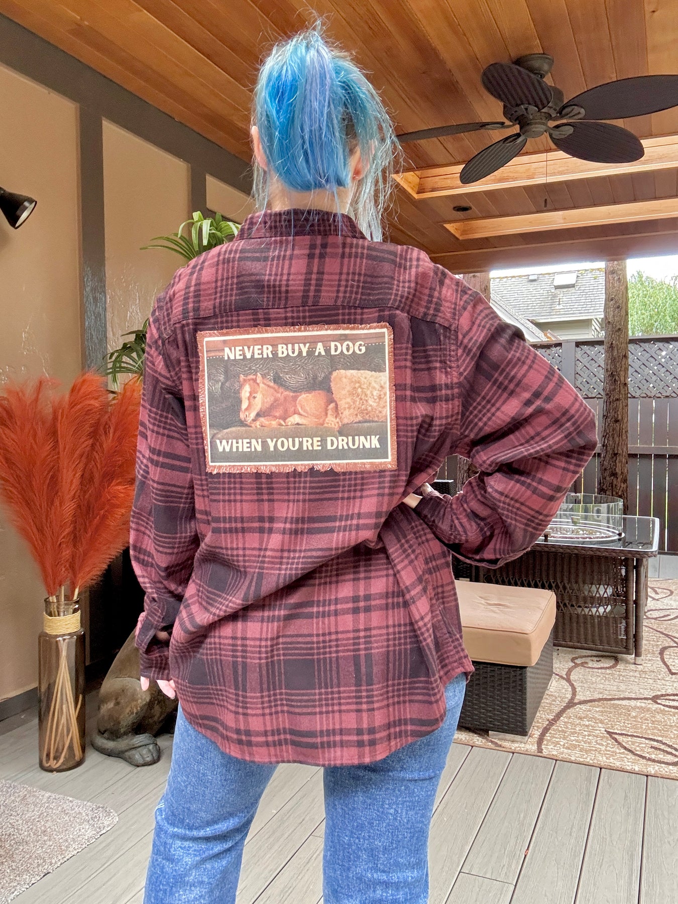 One of a kind up cycled flannels with graphic on the back. Every flannel is different and there's only one of each.