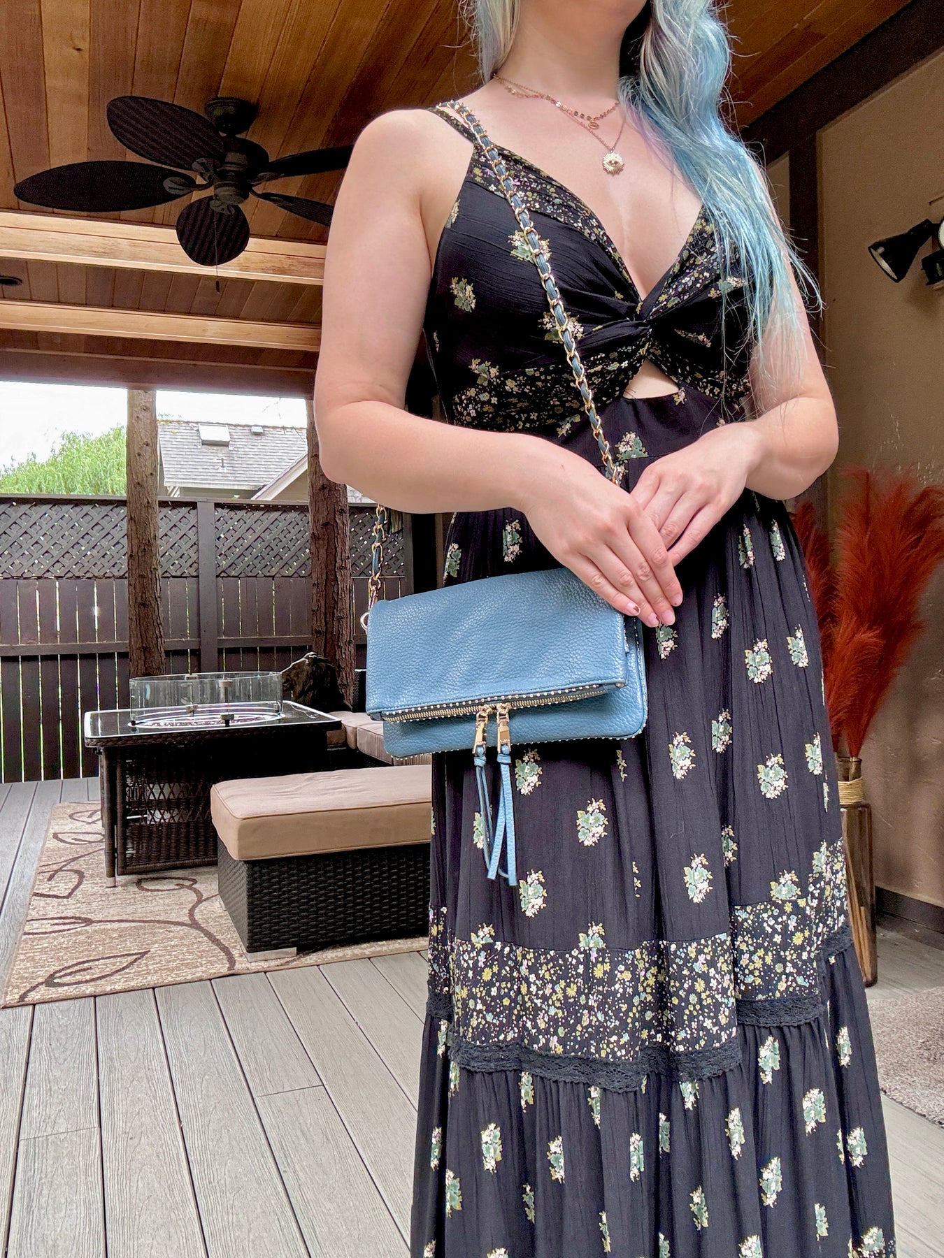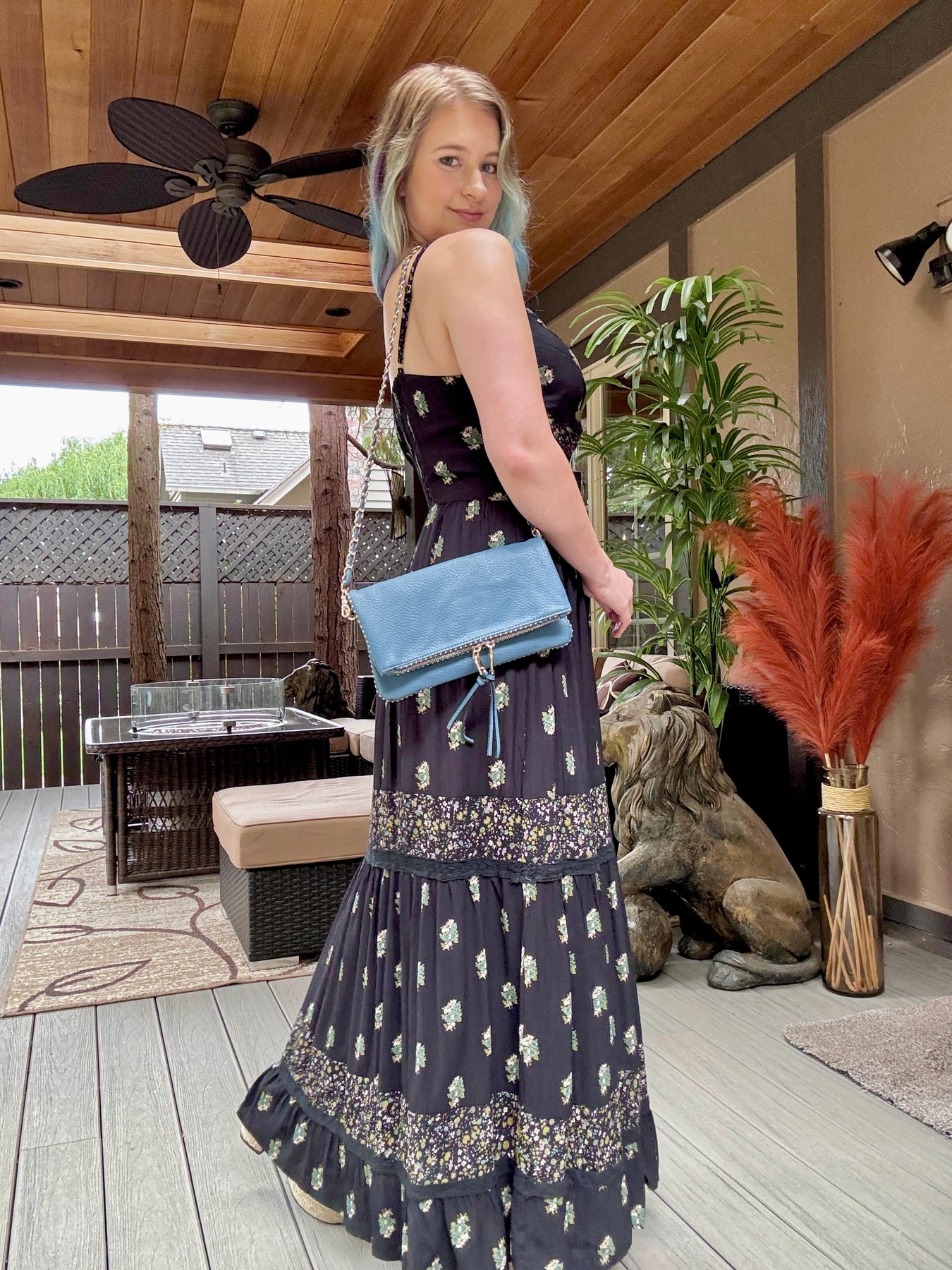 Turn heads and make a statement with the Sasha studded crossbody, the epitome of edgy sophistication. Featuring intricate studded trim detailing, this flappover crossbody exudes contemporary charm. The combination of zipper and snap closure ensures both security and accessibility, while the inside front pocket and back zip pocket offer ultimate organization for your essentials. With two detachable chain straps, you can effortlessly switch up your style. Crafted from vegan leather, you can rock this bag guilt-free, knowing it's cruelty-free and sustainable.