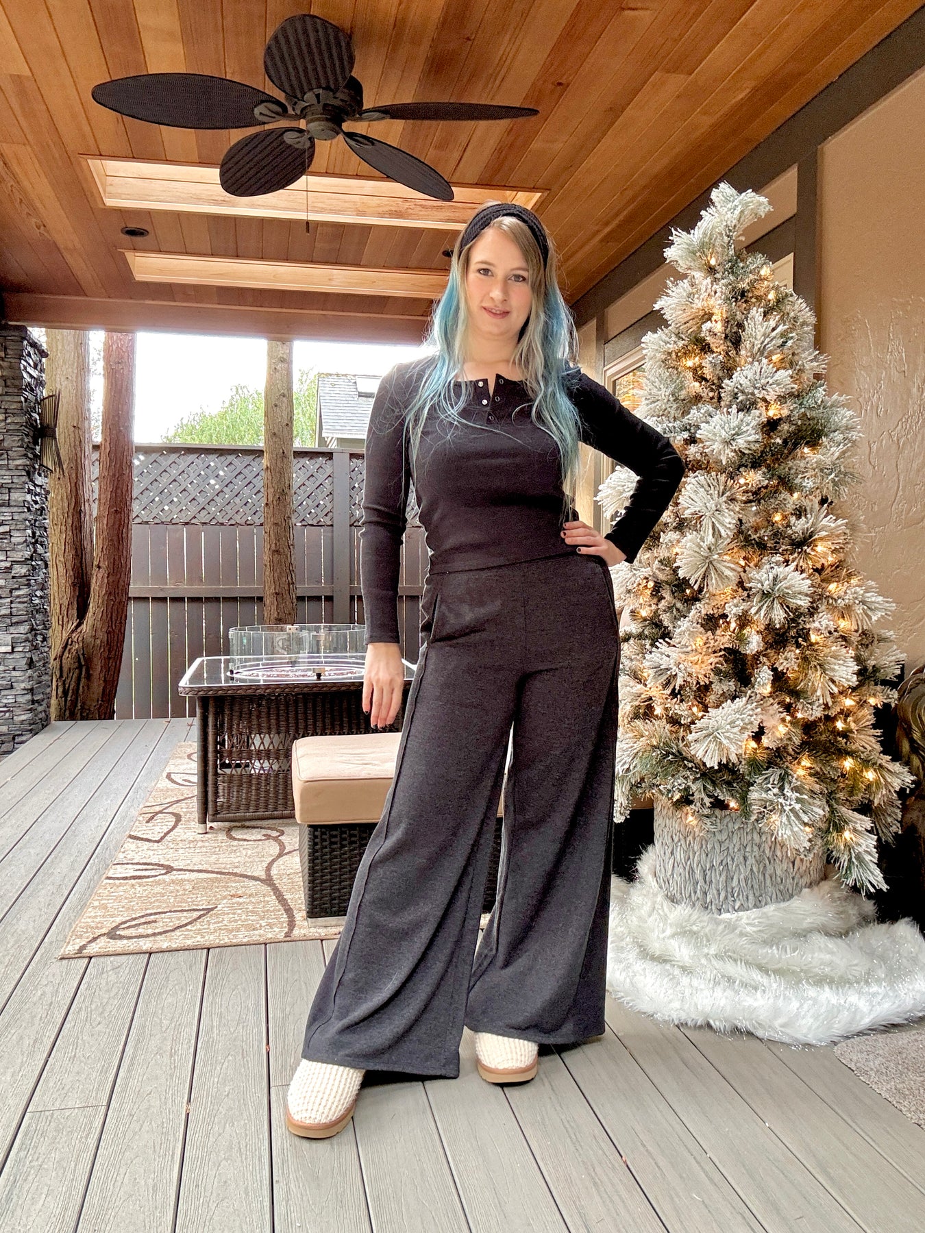 Soft jersey seamed pant with a slight flare. Pants also have a matching henley long sleeve top (sold separately).